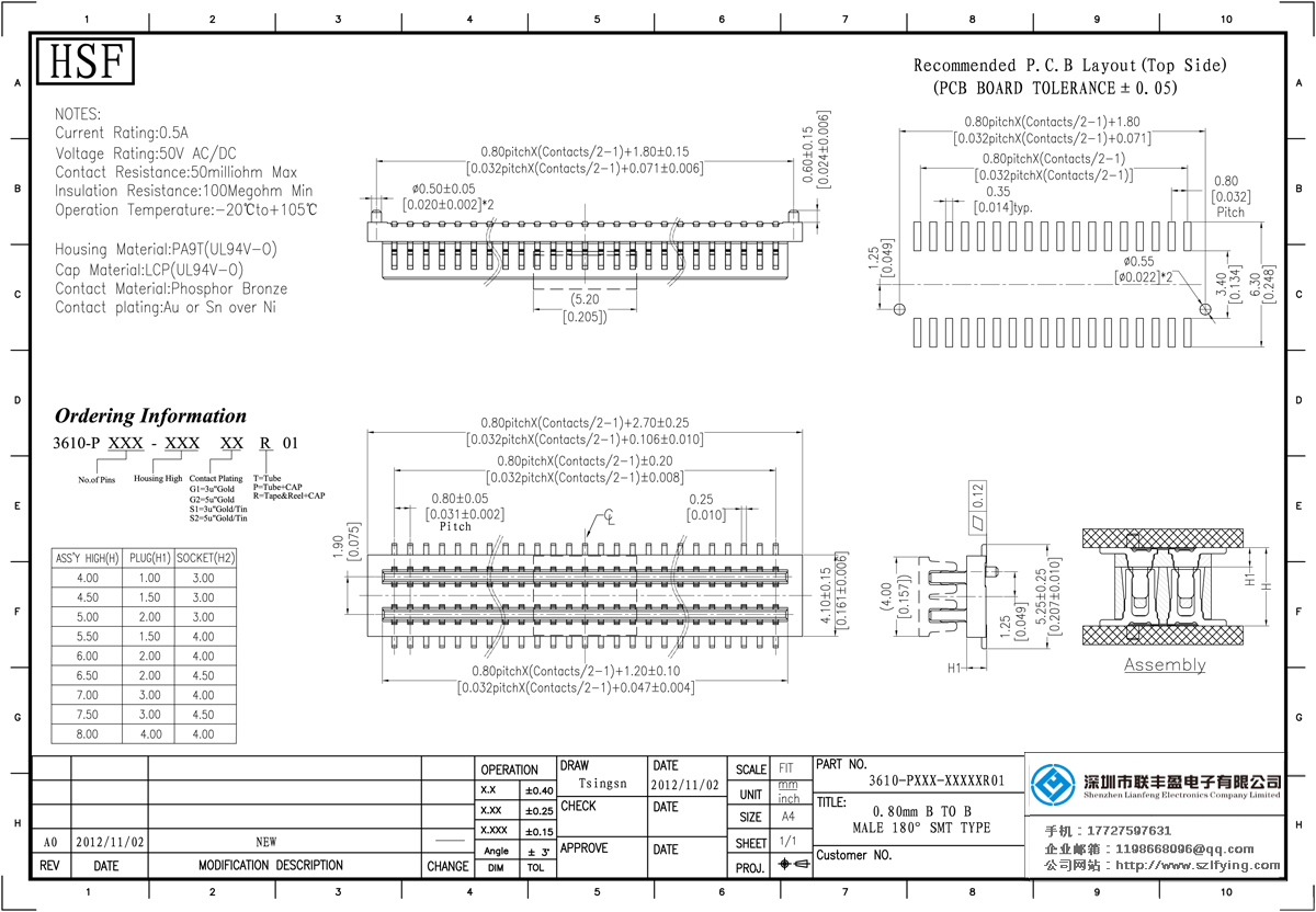 產(chǎn)品分類:Board To Board 連接器 產(chǎn)品型號:0.8MM 公座Board To Board 聯(lián)豐盈 技術(shù)參數(shù):額定電流:0.5amp電流電阻:60m最大絕緣電阻:100m民承受電壓:AC 500V /分鐘工作溫度:40﹣℃+ 105℃接觸材
